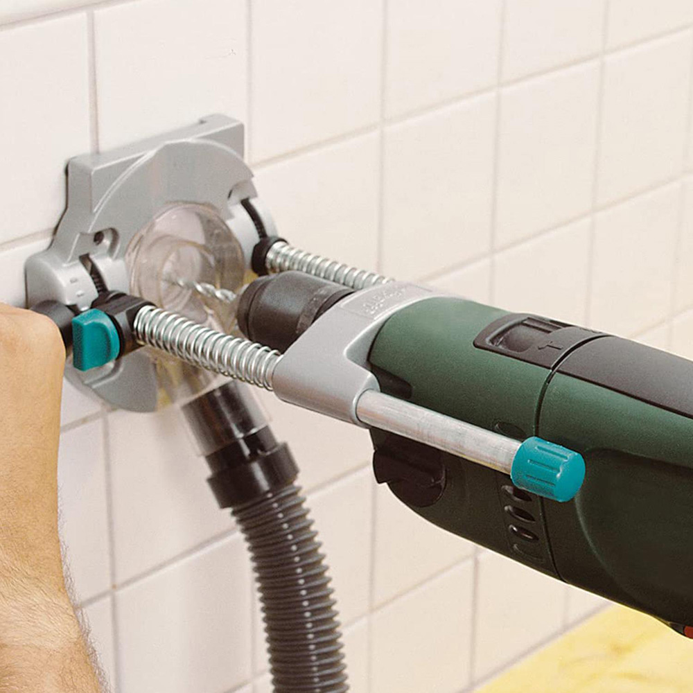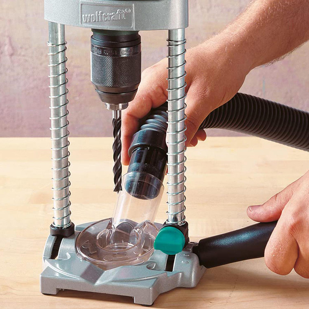 The ideal accessory for your power drill, for precision drilling and hole sawing at given angles in any situation - on the wall, overhead, on slants, in round workpieces, battens, and shaped sections. Additional product specification: Tiltable double guide bars with scale for precision drilling + or - 45 degree. Infinitely adjustable depth stop. Rubber buffers for stable hold on smooth surfaces. With Euronorm collar 43 mm. Machine area of working tables for all machines with Euronorm collar 43mm. Instructions: Do not use it as a router. Box Includes: Tecmobil Mobile Drilling Aid.