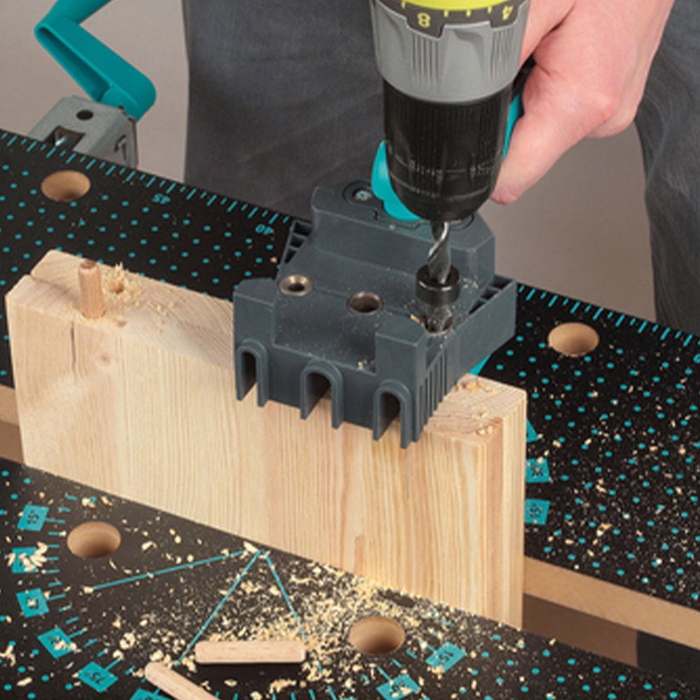 With this project set for dowel joints, you are well-equipped for your furniture build or woodworking project. The centrepiece of the set is the Dowelmaster from Wolfcraft. It enables even inexperienced DIYers to produce perfect edge-to-edge, corner Butt and T-butt joints. Its intelligent design enables error-free positioning of the dowel holes on the counterparts. The drilling template is suitable for boards with a thickness of 12 to 30 mm and is equipped with two centring pins, an adjustable stop, 3 integrated guide slots for round dowels and three steel drill bushes each for 6, 8 and 10 mm dowel pins. The depth-limited dowel holes can be reliably drilled with the 8 mm wood twist drill bit. The set includes 150 beech dowel pins, 8 mm, for directly getting started on your furniture build or other woodworking project. The grooved surface texture ensures optimum purchase in the dowel hole and reliably joins your workpieces in combination with glue. The chamfer on the two ends enables optimum distribution of the glue. Dowelmaster for error-free positioning of the bore holes on counterparts for edge-to-edge, corner butt and T-butt joints with dowel pins with 6, 8 and 10 mm wood twist drill bit, 8 mm, and depth stop for limiting the depth of the dowel holes. 150 dowel pins made of beech wood, 8 mm, length 40 mm for making large pieces of furniture or other extensive woodworking projects. Set consisting of Dowelmaster, Wood twist drill bit with 8 mm and depth stop, 150 beech dowel pins, 8 mm, for creating perfectly fitting and secure corner butt, T-butt and edge-to-edge joints. Drill diameter: 8mm.