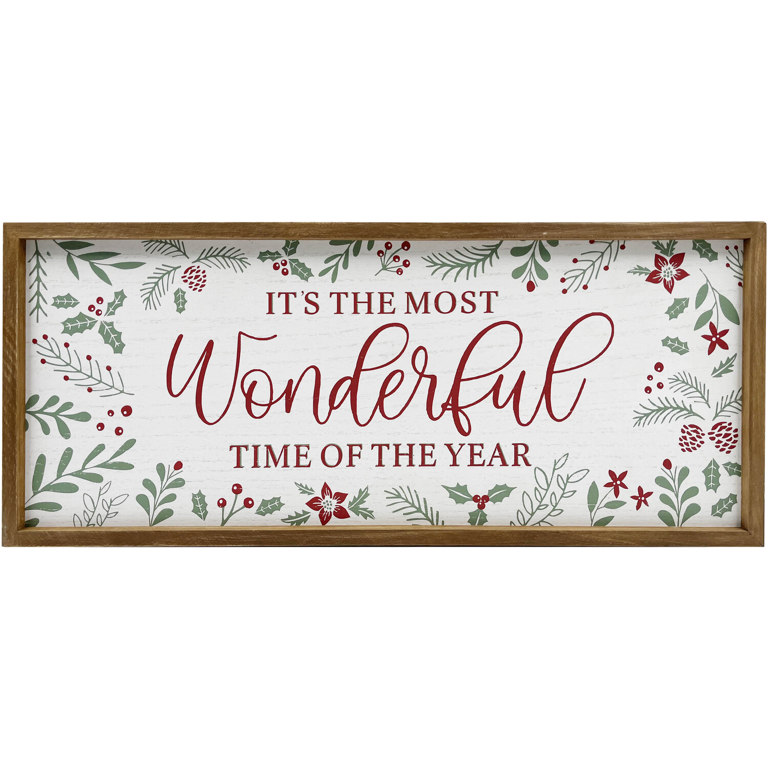 Spread Christmas cheer with this Wonderful Time Festive Framed Sign featuring the joyful text “It’s the most wonderful time of the year.” Perfect for reminding everyone of the true spirit of the season, this enchanting decoration adds a touch of magic to your home. Ideal for any room, this sign is a delightful way to celebrate and embrace the holiday season.