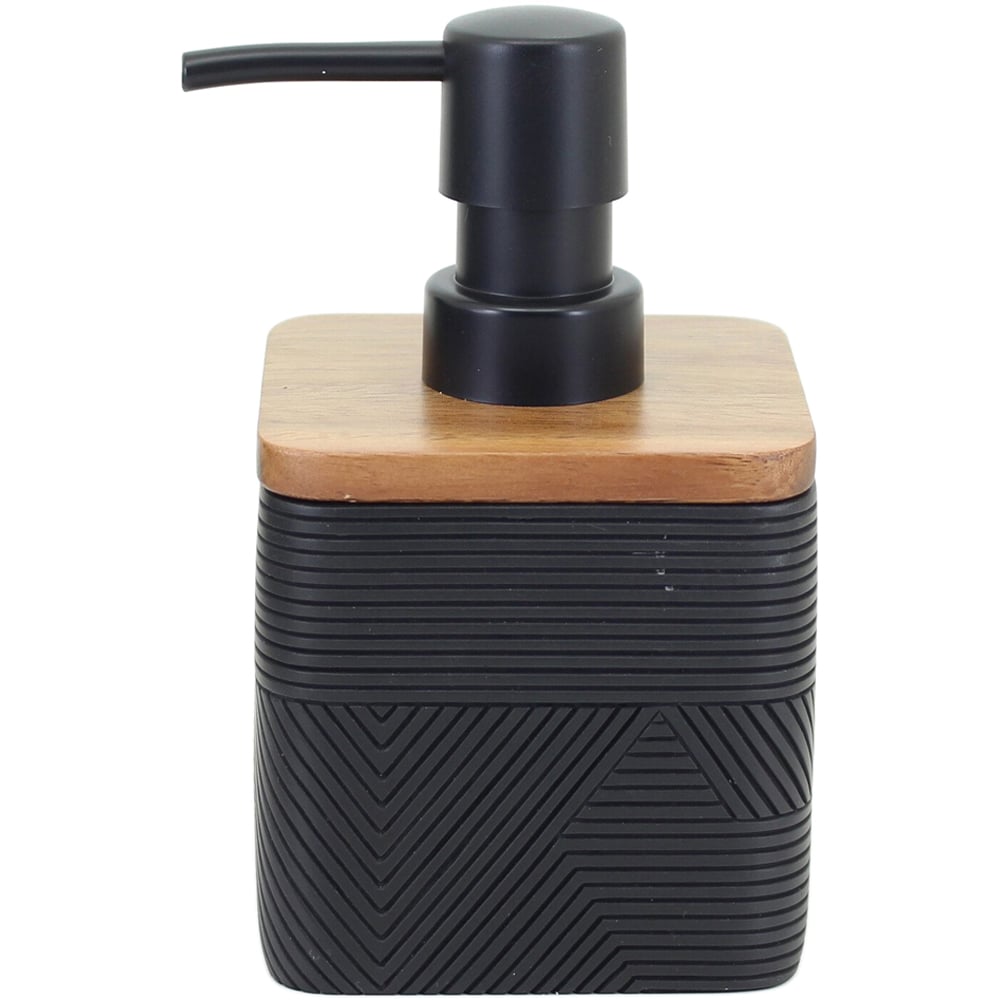 Get rid of unsightly plastic containers and store your favourite soap in this Wood Geo Soap Dispenser to complement your bathroom. Sophisticated in design, it features a black body with a geometric finish and a wooden cover for a natural touch. Easy to use, it'll be a stylish yet practical addition to your bathroom. Match it with other coordinating products from the Wood Geo collection to complete the look.