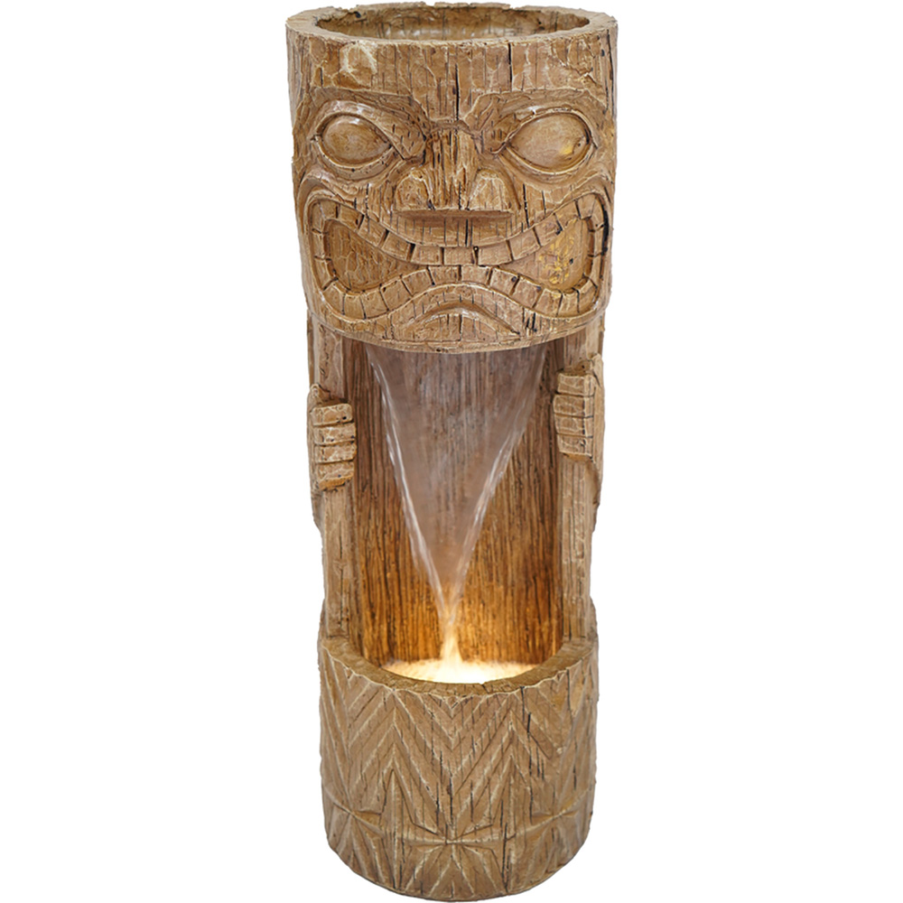 This Polynesian-inspired Tiki Falls Water Feature is the perfect addition to your outdoor decor. It features an interior pump that keeps cascading water flowing for a serene, island-inspired sound. The tiki design adds a Polynesian look for a tropical island-inspired feel, while the integrated LED lights illuminate your space, allowing you to enjoy the fountain day or night. The polyresin and stone powder construction is rust and weather-resistant to keep your fountain in tip-top condition, whilst the wood effect finish provides a totem pole feel.