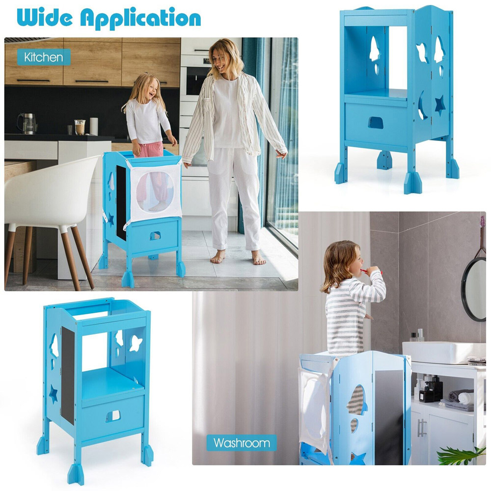 Costway Kids Blue Kitchen Step Stool with Blackboard