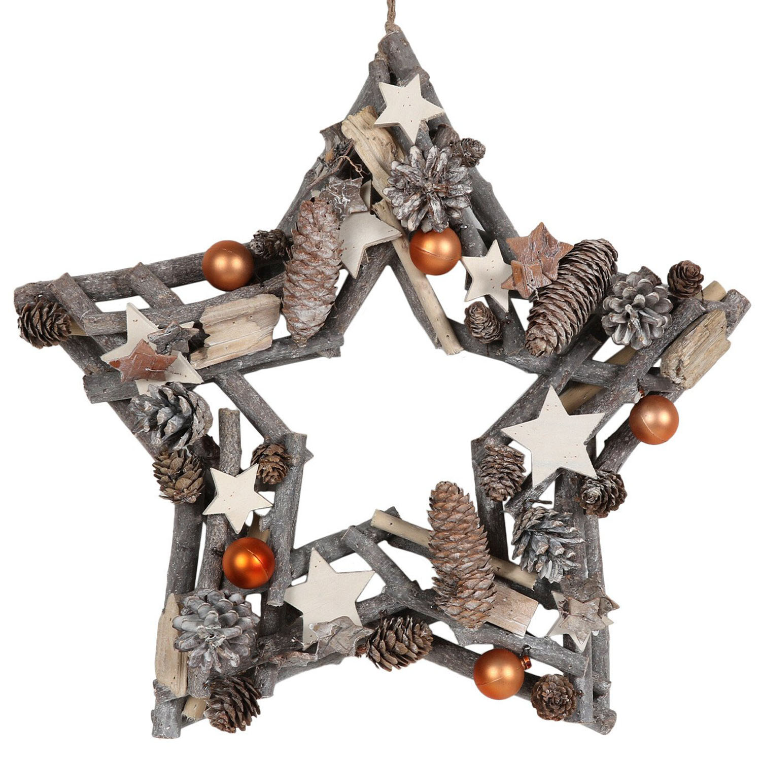 Add a touch of rustic festive charm to your home this Christmas with this beautiful Large Copper Star Wreath. A beautiful star made of pine cones, branches, smaller wooden stars and copper baubles, guaranteed to bring a touch of woodland cheer to your door, walls or mantle this Xmas.