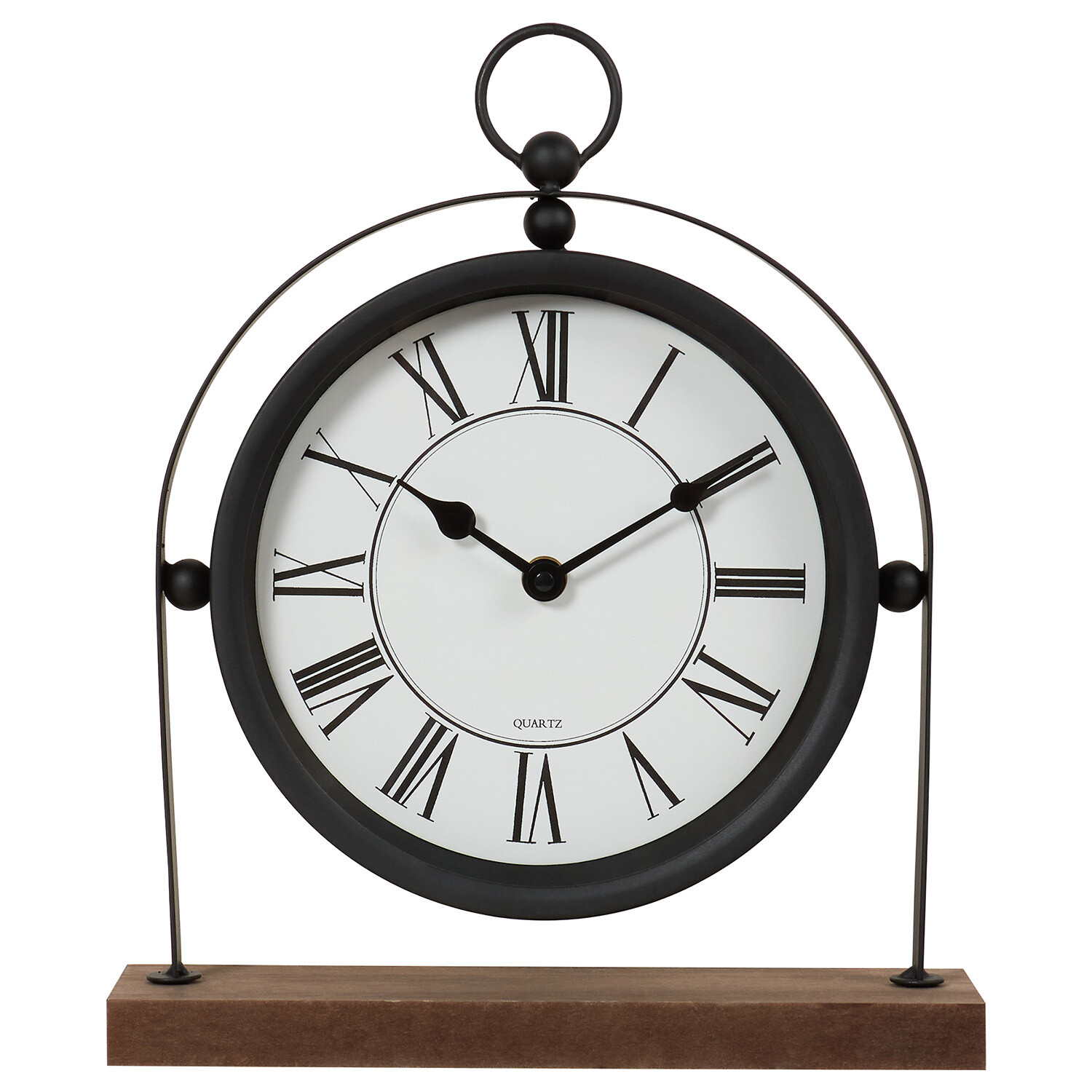 Give a touch of timeless elegance to your space with this Wooden Mantle Clock. Featuring a vintage design, this clock has a white clock face with black Roman numerals and hands for easy reading. It is finished in classic black with a wooden base for a traditional look that'll complement any contemporary decor theme. Easy to use with a freestanding design, this clock will elevate your decor with graceful style.