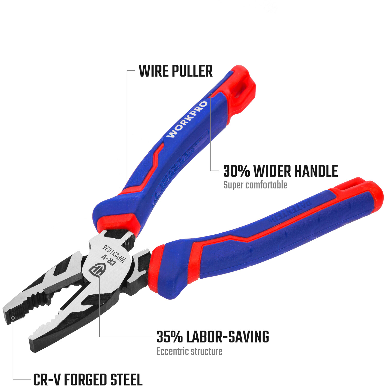 Experience convenience and functionality with the Workpro CR V Combination Pliers 180mm. Made using quality CR-V forged steel, these pliers are perfect for various tasks, right from professional to DIY needs. The pliers come with practically designed jaws to ensure a strong grip on wires, bolts, and other small components. Comfortable to use, it saves 30% of your labour and comes complete with easy grip handles for added ease. Whether you are a DIY enthusiast or a professional, this tool will make a fantastic addition to improve efficiency and get accurate results.