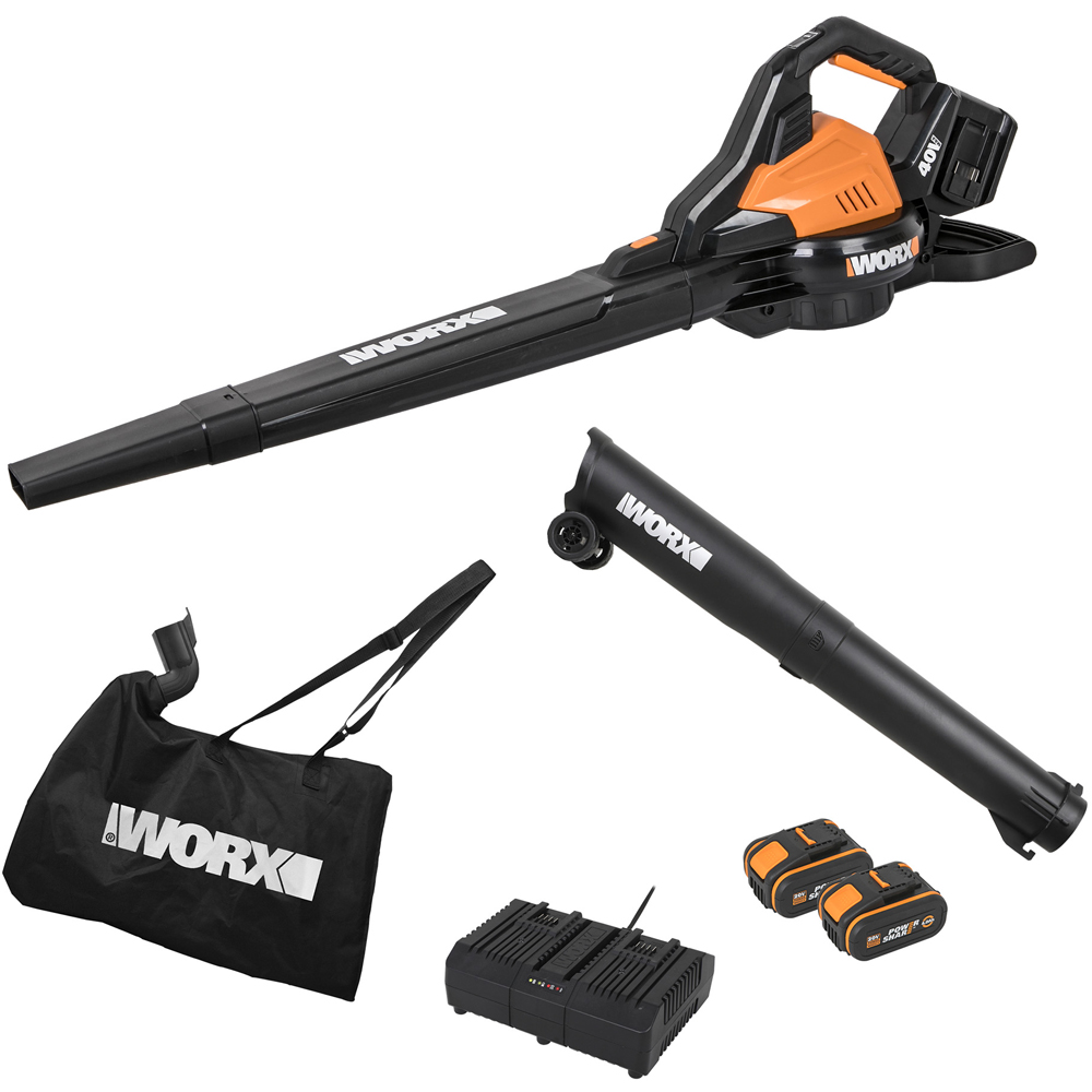 The Worx 40V Cordless Leaf Blower/Vacuum/Mulcher can handle it all. Made to perform, it delivers up to 575m³/h air volume and 335km/h air speed. More than just a cordless leaf blower, this multi-function tool shreds leaves and collects debris, making garden work easier than ever. The two-stage impeller reduces 12 piles of leaves into one, so you can cover more ground without stopping to empty the bag. The leaf blower tube is equipped with a wheel to save you time and effort. Quickly switch from blower to vacuum—no tools needed!