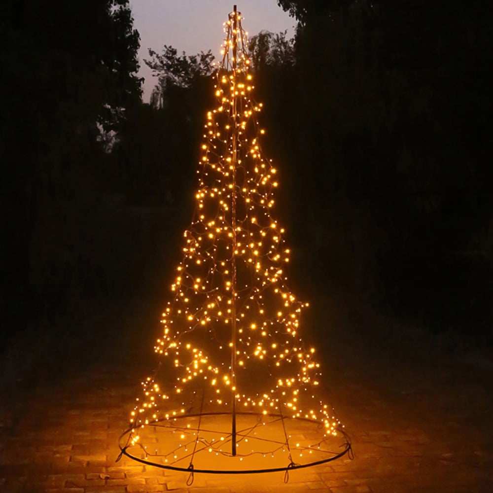 Decorate your space with the shimmery Xmas Haus 1080 Copper Gold LED Gold Tree 11.8ft. This stunning LED firework Tree enhances your decor settings with 10% twinkling, making it more spectacular. It features a chic gold frame adorned with copper gold effect LEDs, creating a magical ambience reminiscent of fireworks. You can install this tree indoors and outdoors with the five-meter lead and convenient timer function built into the power supply. This power supply cycles six hours on and 18 hours off, saving energy while exuding charm. It is ideal for Christmas and festive celebrations, year-round garden decor, and commercial displays.