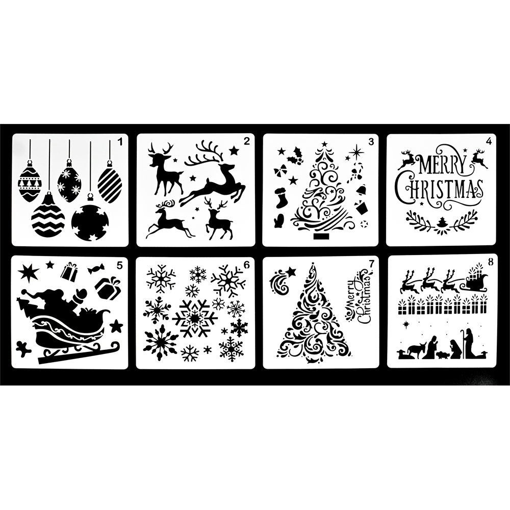 - Includes 8 unique Christmas and nativity themed stencils