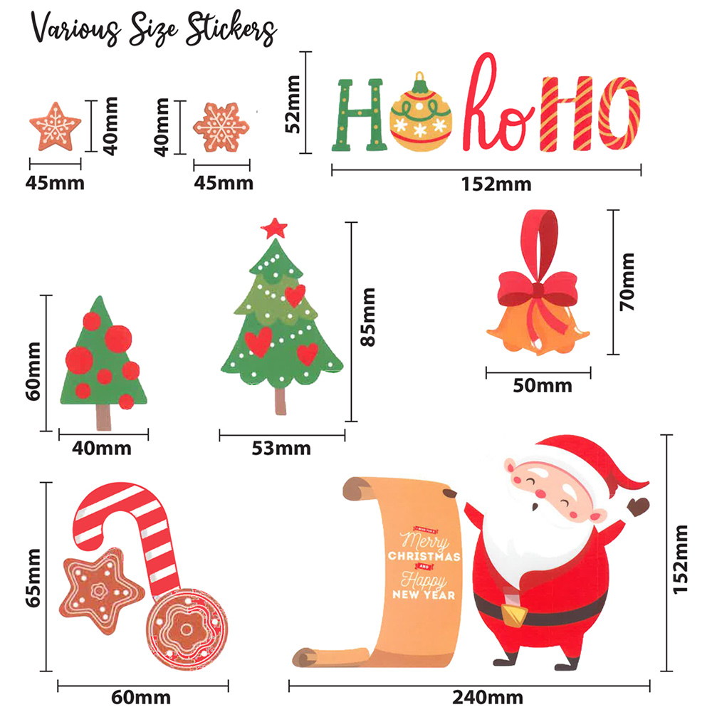 This Xmas Haus Christmas and Festive Themed Window Decoration Sticker Set is perfect add an another fun layer to your festive decorations. This pack of 120 stickers is designed to bring the holiday spirit to your home, school, or business. Transform your windows into a captivating winter wonderland and spread joy and cheer to all who pass by. With a variety of designs and sizes, this sticker set offers endless creative possibilities. From Santa Claus and snowflakes to Christmas trees and reindeer, the festive themes will instantly capture the essence of Christmas. Whether you want to create a whimsical scene or a traditional holiday display, this set has got you covered. These window stickers are incredibly easy to use. Simply peel them off the backing and apply them to any smooth surface, such as windows, glass doors, or mirrors. They adhere securely and can be repositioned without leaving any residue, allowing you to experiment with different arrangements and configurations.