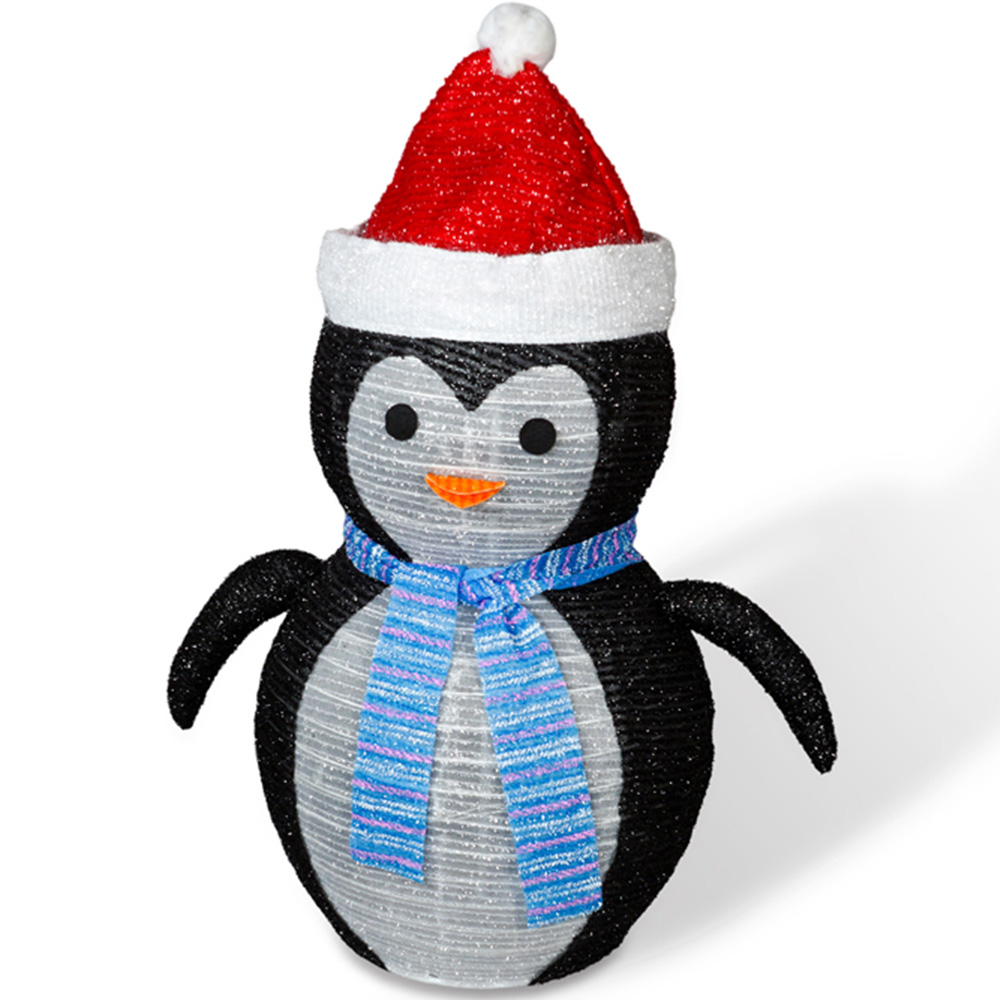 Bring festive cheer to your home or garden with a collapsible LED penguin display that stands 70cm tall and glows warmly with forty-five LED lights, perfect for both indoor and outdoor Christmas decorating. Set the handy timer and let the penguin light up your evenings for six hours, then automatically turn off for eighteen, making it easy to enjoy the magic without lifting a finger. Battery-operated for total flexibility, you can place this charming penguin wherever you want to add some Christmas spirit, from the garden path to the living room. Dimensions: 70 x 57cm.