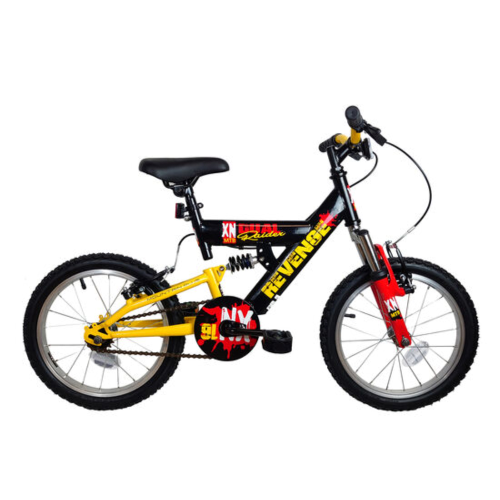 XN Revenge 16 Inch Black Yellow and Red Full Suspension Mountain Bike