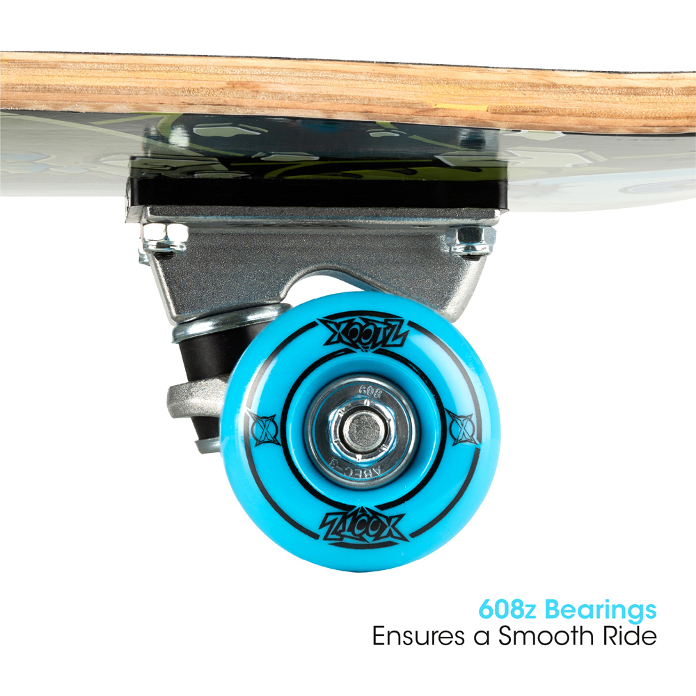 Let your child ride in style with the Xootz 31 inch Snake Skull Double Kick Skateboard. This double kick skateboard offers riders a sturdy nine-ply maple deck measuring 31 x 8 inches. The assorted deck is suitable for any intermediate or budding skateboarder. The heavy-duty aluminium trucks with 6mm risers and PU bushings give riders a sturdy platform, while a smooth ride is delivered by the 54 x 36mm PVC wheels and 608Z bearings. The board's double kick capability allows tricks to be performed from the nose and tail of the board, meaning plenty of pop for ground and rail tricks. Not only does it provide an exciting way for children to exercise, but it also helps improve balance, coordination, and confidence. Plus, with the stylish design and colour, your child can express their unique personality while cruising around the neighbourhood. So why wait? Get it today and watch as they discover the joy of outdoor play.