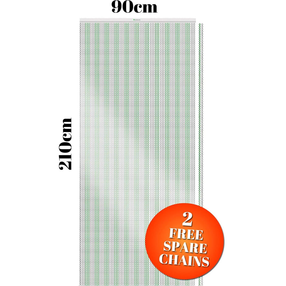 Make sure that flies are always kept out of your home or business with the Xterminate Green and Silver Chain Curtain Fly Screen. Versatile and easy to use, they are simple to install and keep insects from entering any doorway. You can use these fly screens in doorways, patio doors, french doors, conservatories, mobile homes, caravans, campervans and motorhomes. So, whether you serve food or drinks, or have a busy work environment where flies become irritating - these fly screens will keep them away. To make sure these fly screens won't stop you from walking freely through your doorway, they've been designed to not cause any clothing snags. This means that you, your family members or customers can walk through the doorway freely, whilst still keeping flies away. Crafted from high-quality, heavy-duty and premium aluminium, the fly screens are expertly made. Plus, they're also coated with anodised plating to prevent weathering to ensure they'll last for many years to come.