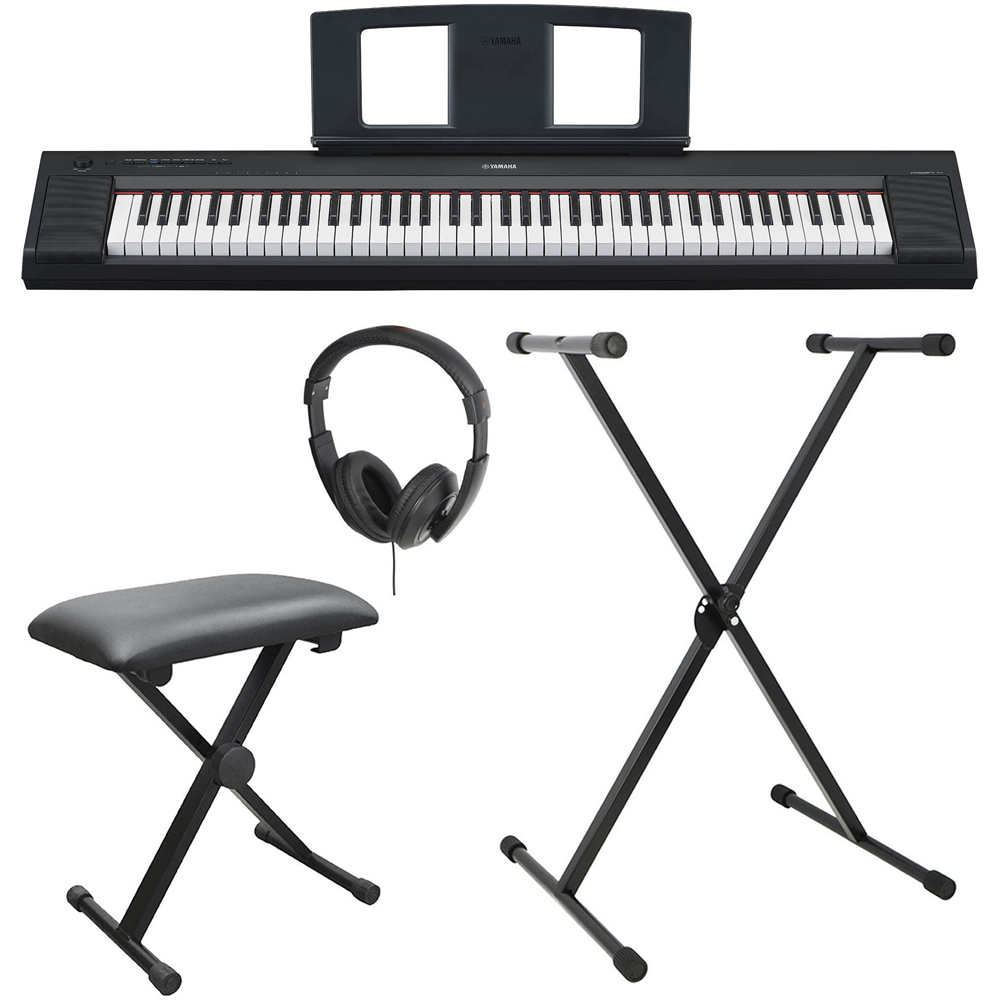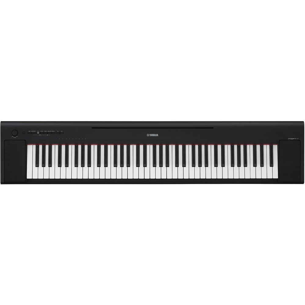 Create authentic tunes with the Yamaha Piaggero Black NP35 Electronic Keyboard. The most prominent feature in all of the Yamaha Piaggero series keyboards is their compact design combined with maximum functionality. It has a superb piano feel with the 76 box-style keys, and it weighs only 6kg making it highly portable and easy to store. It is a fantastic instrument for anyone who wants to learn the keyboard. This keyboard lets you experience the ultimate joy of playing music with its touch sensitive keys. The sound changes realistically in response to the force of your keystrokes, enabling you to enjoy expressiveness similar to that of an acoustic piano. Its modern design features aspects that are reminiscent of an acoustic piano and focuses on only the most practical functions, making it convenient for people who are not used to digital instruments. It also features a record and playback function that allows you to quickly record your practice and check your progress or capture your ideas. This set includes headphones, a sustain pedal, a USB, a stool and a stand. The headphone jack enables silent practice and sustained pedal connection. You can connect this keyboard through USB to your computer or iOS device for music production and you can also connect it to Yamaha’s ‘Smart Pianist’ app, developed exclusively for use with Yamaha’s digital keyboards.