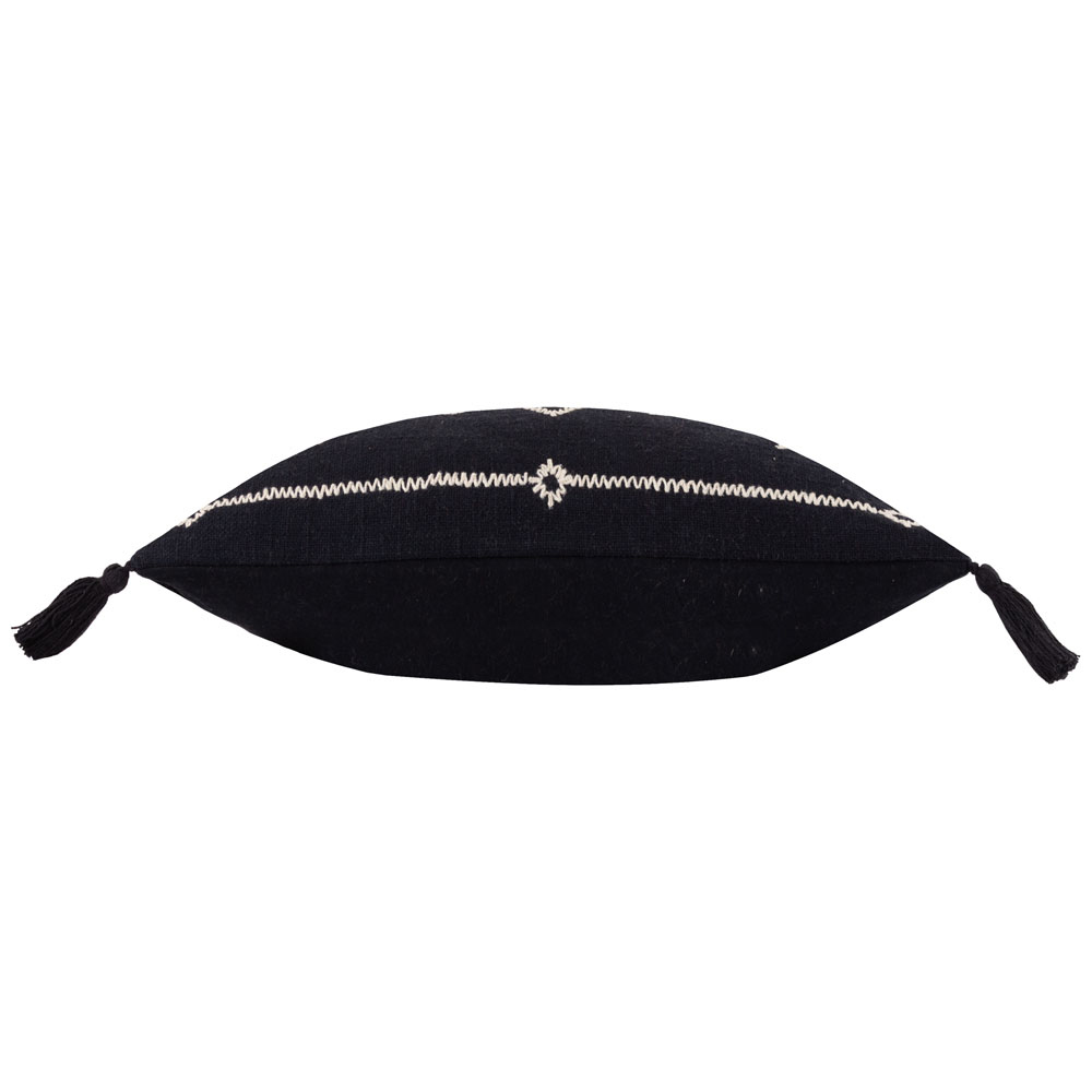 Style your sofa or bed with the Yard Folis Black Embroidered Cushion. Inspired by global styling, the Folis accent cushion features delicate geometric embroidery details set on a cotton slub base. Complete with a plain cotton reverse and all-over side tassel edging, this cushion will layer well within any interior.