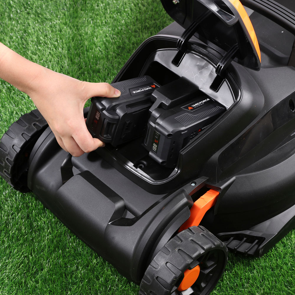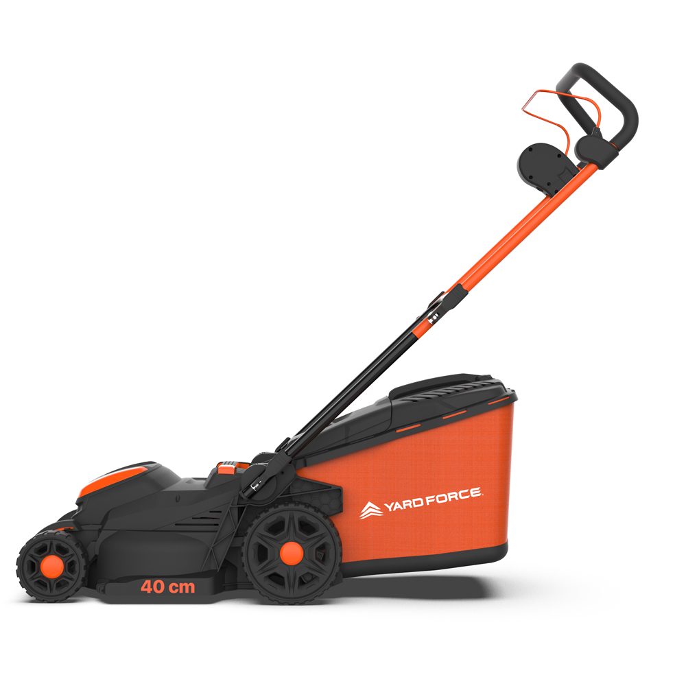 Experience a blend of precision and convenience with this Yard Force LM C40B 40V 40cm Cordless Lawnmower. Equipped with torque-sensing boost technology, the brushless motor automatically senses if a power boost is required to tackle your lawn for a perfect cut. Its front and side combs guide the grass towards the 40cm steel blade, to save you the need for additional edge trimming. This lawnmower also offers you the freedom to choose between its 45L grass bag or mulching plug. Experience a blend of precision and convenience with this Yard Force LM C40B 40V 40cm Cordless Lawnmower. Equipped with torque-sensing boost technology, the brushless motor automatically senses if a power boost is required to tackle your lawn for a perfect cut. Its front and side combs guide the grass towards the 40cm steel blade to save you the need for additional edge trimming. This lawnmower also offers you the freedom to choose between its 45L grass bag or mulching plug. While its foldable handles help save you some space, making storage more practical so you can enjoy a blend of convenience and precision. Handles help save you some space, making storage more practical, so you can enjoy a blend of convenience and precision. This lawnmower comes with two 20V/4.0Ah batteries - 40V (2 x 20V/4.0Ah).