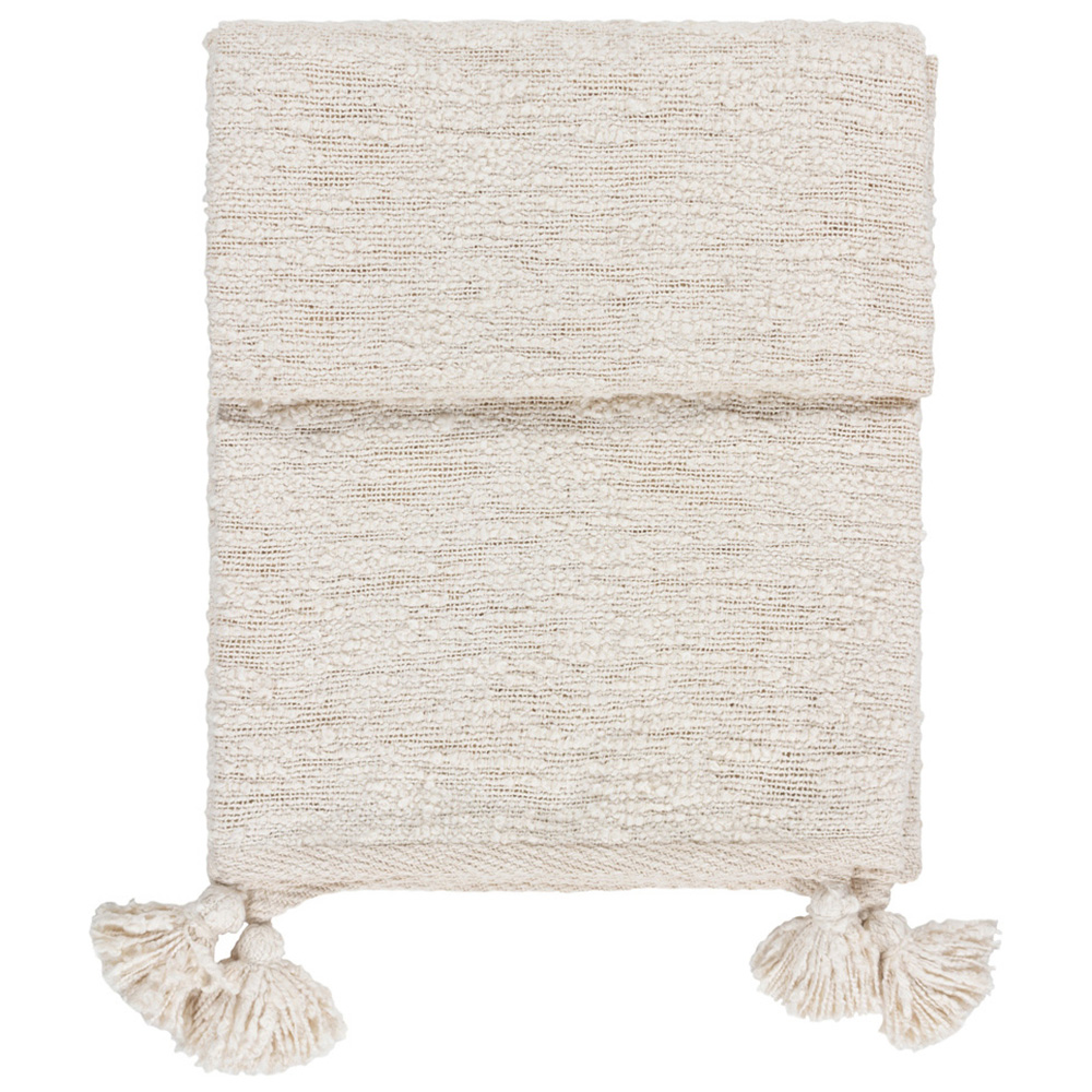 Frame your world in style with this Yard Heath Ecru Cotton Tasselled Throw. Exuding both warmth and style, the chunky woven throw features soft, heavy cotton with exaggerated yarn for a beautiful textured finish. Complete with a four-corner tasselled trim, this design is perfect for layering to create a timeless, relaxed feel for your home. Made from super soft cotton and acrylic fabrics, the throw is designed with a cosy feel in mind. Size: 130 x 180cm.