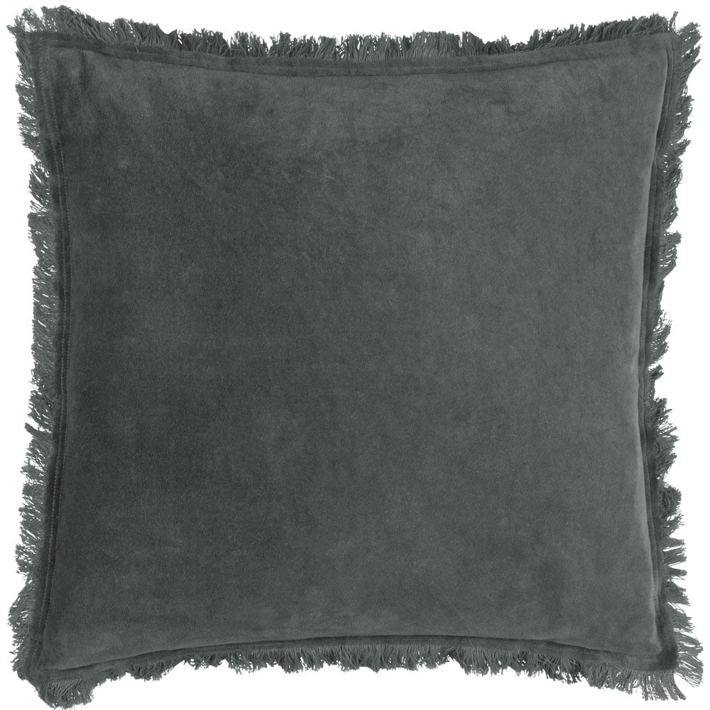 Yard Jaye Slate Velvet Fringed Cushion