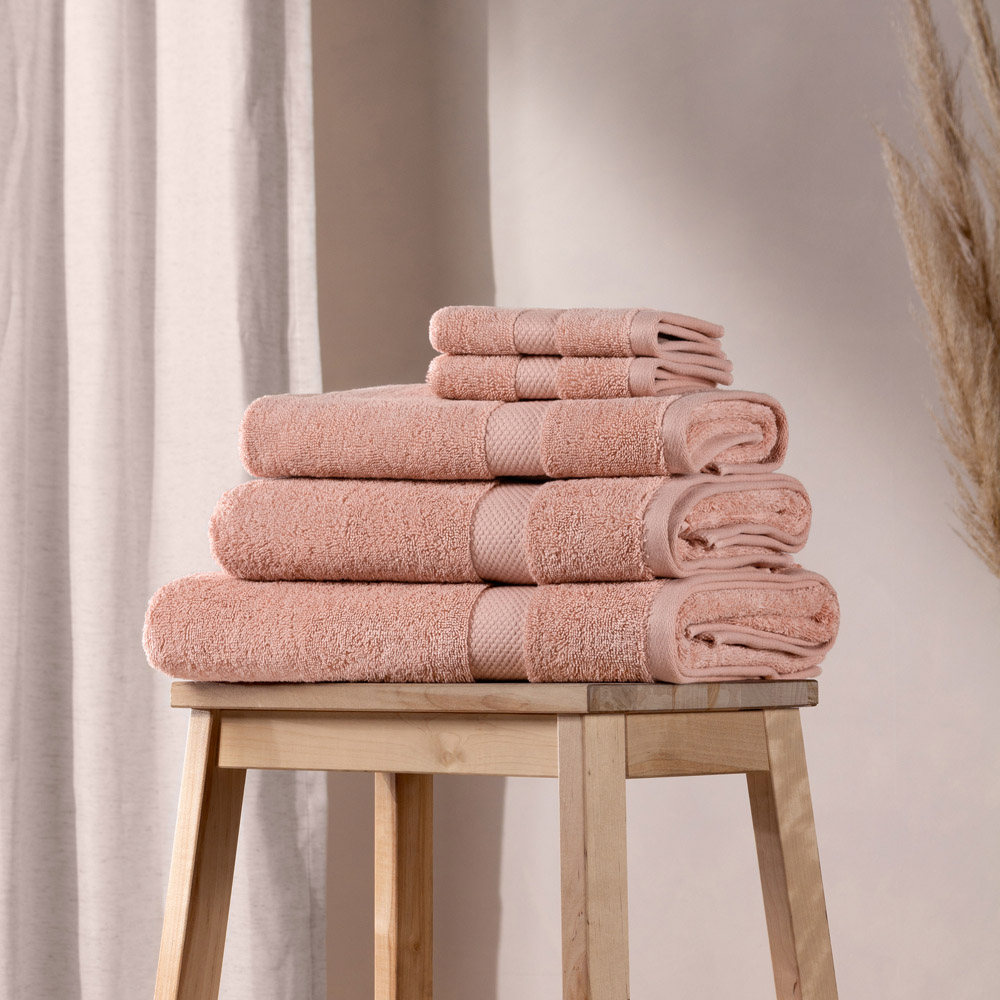 Wrap your daily routine in irresistible softness with this Yard Loft Combed Cotton Blush Towel Bundle with Bath Sheets. Designed to be super absorbent and ultra-soft, these towels are made using 100% plush combed cotton for a relaxed everyday feel. With 650gsm thickness for a plump and fluffy feel, the set features a basket weave band, a quality design element that gives these towels a stylish and effortless signature look. Available in a variety of soothing shades, you're guaranteed to find a colour to suit your own space. This product is certified by OEKO-TEX, showing it has been sustainably made. Includes four hand towels measuring 50 x 90cm (19.6 x 35.4 inches) and two bath sheets measuring 90 x 150cm (35.4 x 59 inches). Set of six.