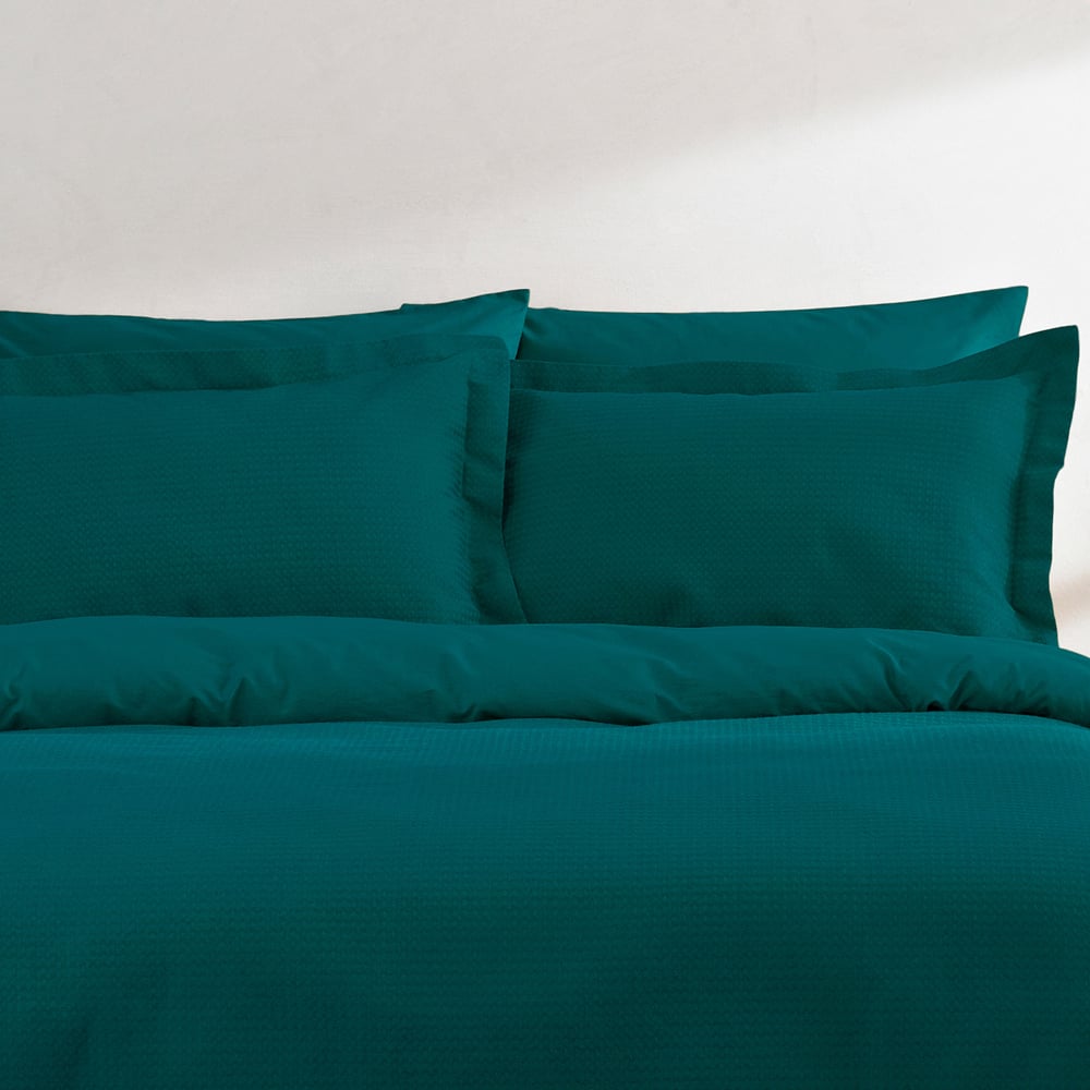 Upgrade your sleep sanctuary with the Yard Super King Teal Waffle Textured Duvet Set. This full-bodied duvet set is made from a specially woven loom to create a unique 3D waffle weave design on soft, durable cotton fabric and is finished with an Oxford border for that extra touch of class. The large surface area keeps you cosy on cold evenings but is still breathable in warm weather, making it ideal to use all year round. Supplied with two pillowcases. Supplied with two pillowcases. So, why wait? Order yours today and peacefully drift off into the slumberous duvet.