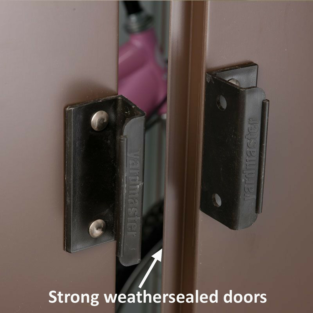 Keep your garden equipment secure with the Yardmaster Shiplap 8 x 6ft Deluxe Apex Metal Storage Shed. This shed provides a sturdy and durable storage solution for storing items such as garden tools and lawnmowers. It features a double sliding door design with tall gables, two translucent roof panels and bright walls that create a more useable interior. This storage shed has been crafted using hot-dipped galvanised steel and requires no maintenance. It includes stainless-steel rust-free anchor fixings for securing the shed to a firm level base such as concrete.