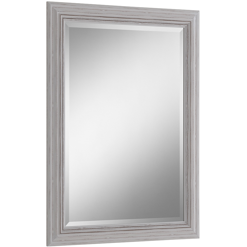 Distressed White Framed Wall Mirror, this modern, white mirror features a rectangular lined pattern, which gives it a contemporary look. The mirror glass has bevelled edges. This product can be hung both ways and fittings come pre-attached to the back to enable this.