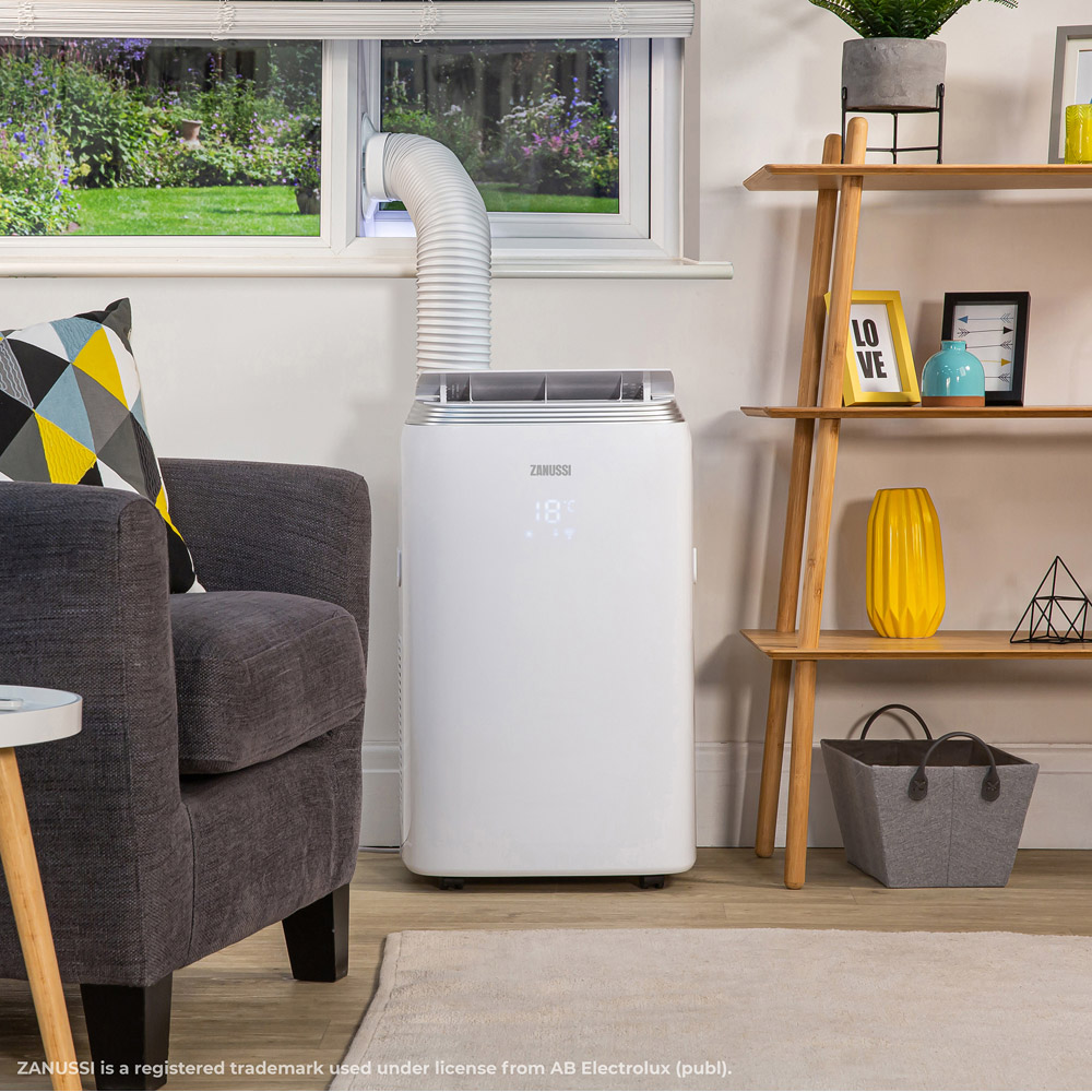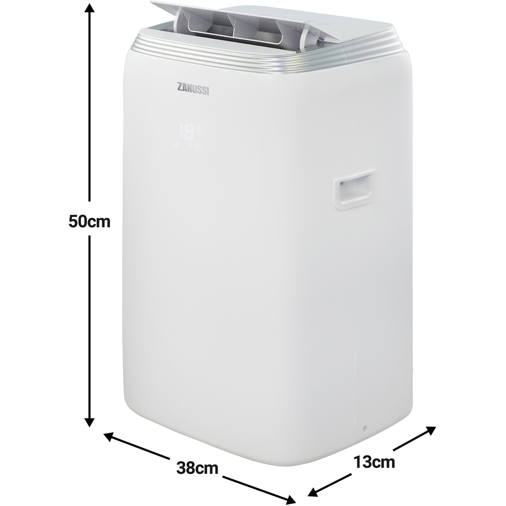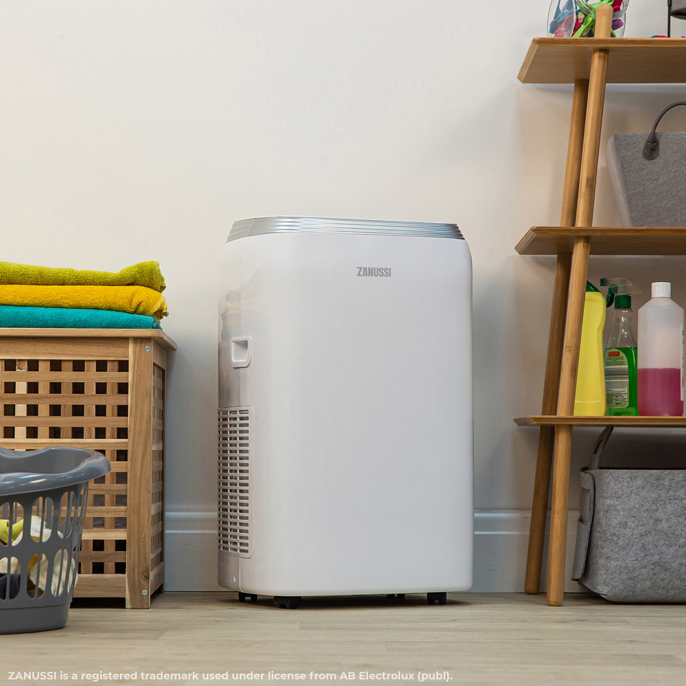 The 2in1 ZANUSSI portable air conditioner provides you with a 9,000BTU cooling capacity that’s able to manage the climate of any room up to 16m². The LED display and remote control function, allows you to manage the room climate from the unit itself, or from a distance. When working as an air conditioner, this portable product lets you choose between 3 speeds. With an oscillating function also included, you can decide between an air flow that’s directed towards one spot, or cooling your whole room. The dehumidifying function, can remove up to 1.1 L/hr. This helps to keep your room fresh, stop the spread of mould, or simply help to dry your washing in a quiet and effective way. The 2in1 ZANUSSI portable air conditioner comes with a free one year manufacturer guarantee. A free second year guarantee is available upon registering your product.
