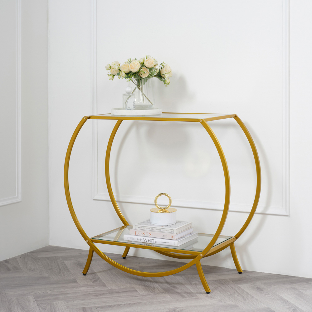 Zenor Single Shelf Clear Glass Gold Frame Console Table