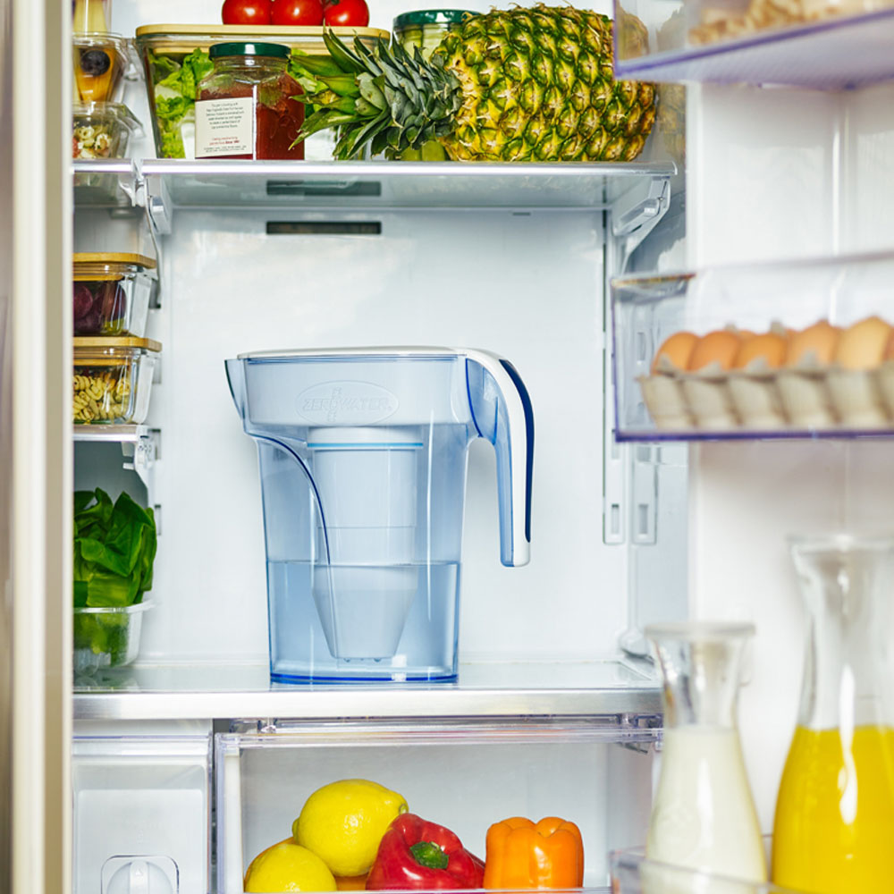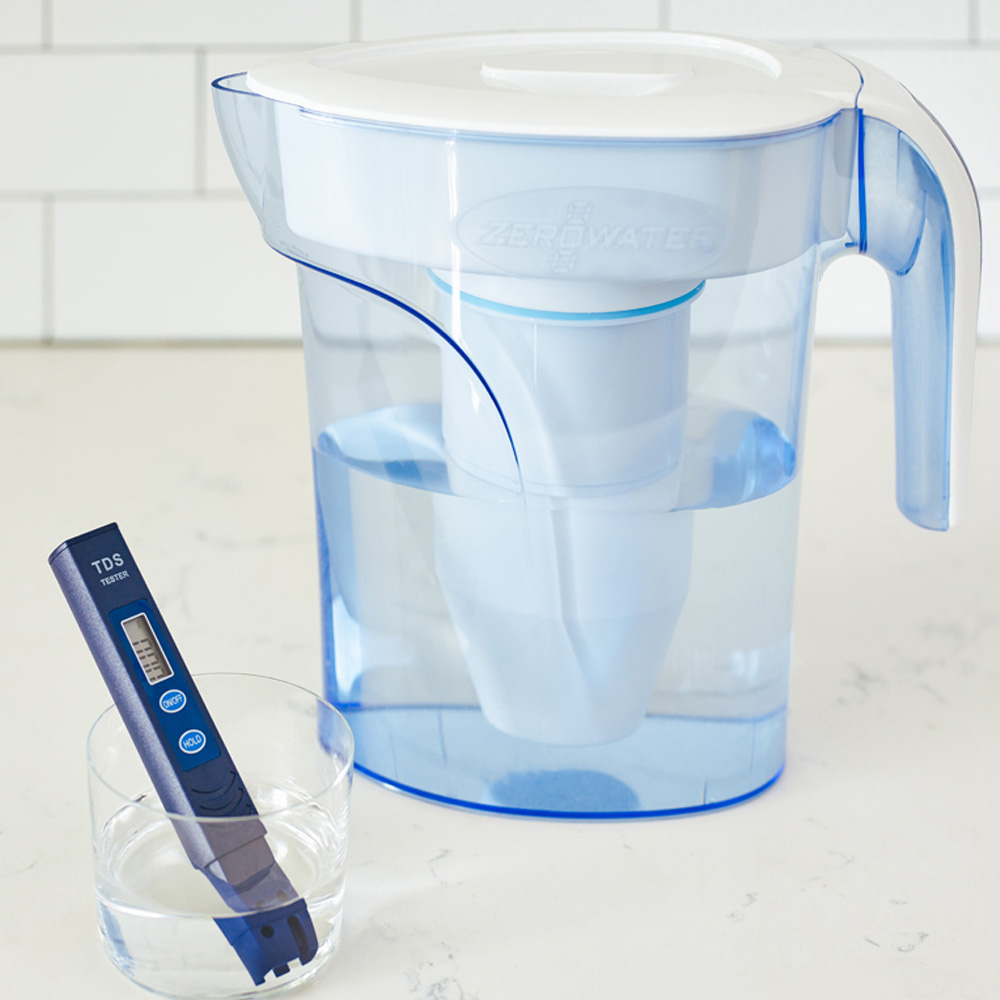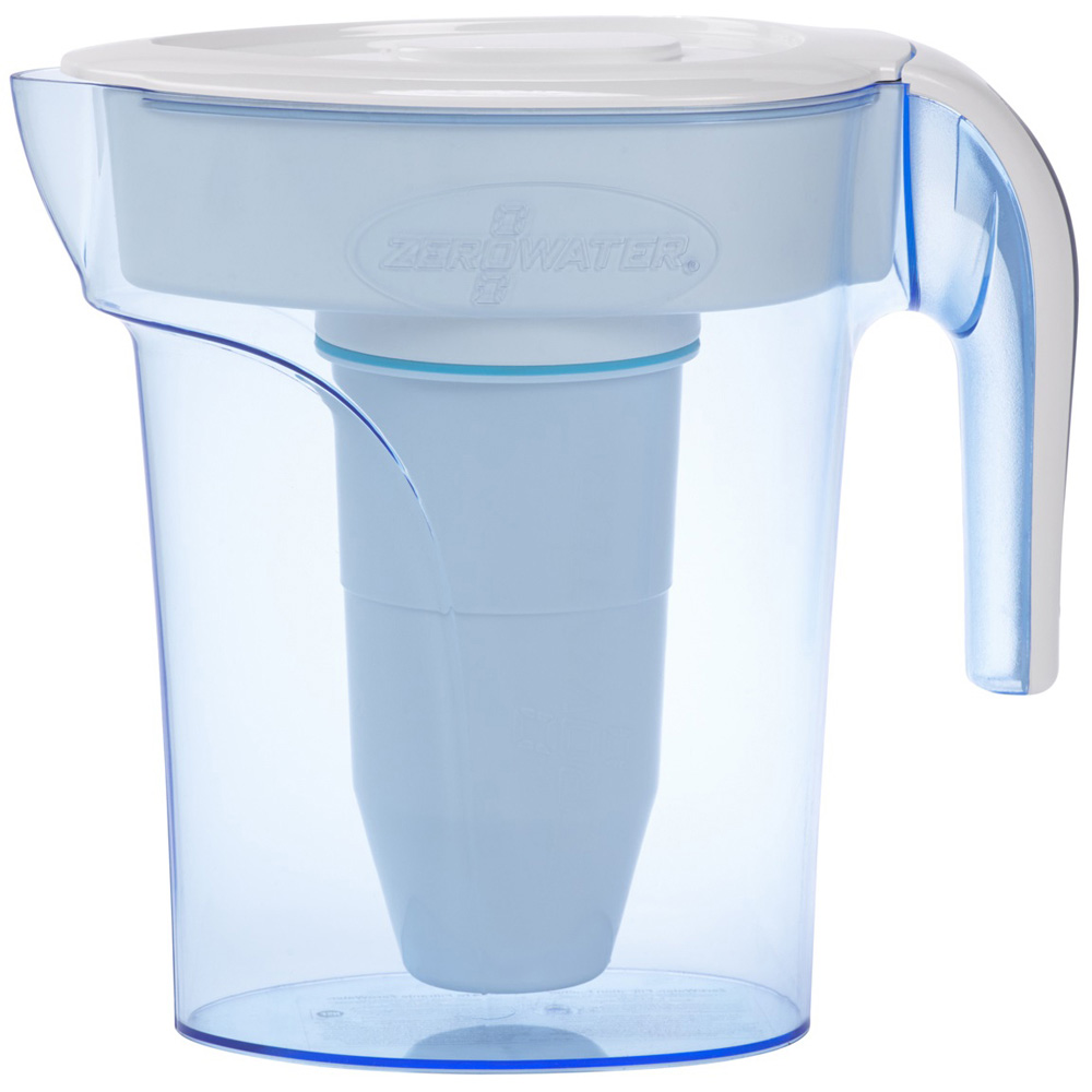 Enjoy clearer, better-tasting water with ZeroWater 6 Cup 1.4L Filter Jug. ZeroWater 6 Cup 1.4L Water Filtration Jug's ergonomic space-saving design is ideal for small refrigerators or users who prefer a lightweight jug. Using ZeroWater's patented ion exchange technology incorporating a 5-stage filtration system, combines FIVE sophisticated technologies that work together to remove 99.6% of all total dissolved solids (TDS), the non-organic and organic sediments and contaminants found in our everyday tap water. ZeroWater's filtration is also the only system independently certified by the global public health and safety organization NSF to reduce microplastics exceeding 3 microns in length, the forever chemicals PFOS/PFAS by 95% along with lead, and chromium to deliver the purest tasting water. All ZeroWater jugs include a free Water Quality (TDS) Meter to test your water to ensure the highest quality filtration on the market.