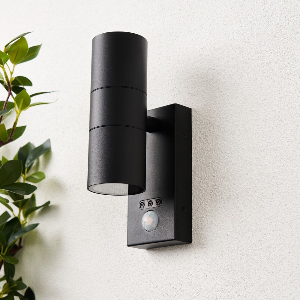 Zink Luna 2 Light Black Up and Down Wall Light PIR Motion Sensor